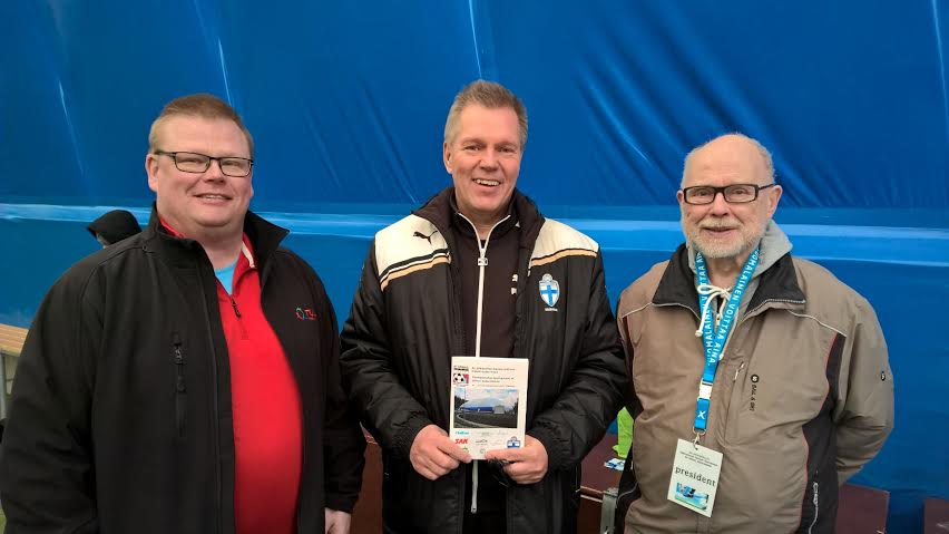 Kuvassa: Jarkko Tenkula (TUL), Kari Hakkarainen (Suomen Palloliitto) ja Reijo Virtanen (Ay-jalkapallo)