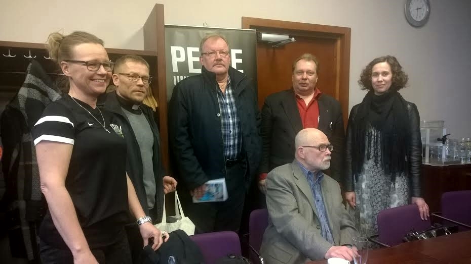 Aivan viime hetken Viron joukkueen peruutuksesta huolimatta turnaus saatiin tänään kunniakkaasti aloitettua. Avausottelussa SAK Lahti ja pikaisella komennuksella mukaan saatu Union Lahti tasasivat pisteet maalittomassa ottelussa. Huomenna turnaus jatkuu klo 10 ja heti alkuun on tarjolla ”jäsenten välinen” peli, jossa Peace United kohtaa AKIliitot. Hallilla saattaa olla tungosta, kun nämä kaksi joukkuetta kohtaavat, joten tule sinäkin. Kuva turnauksen päivällä pidetystä tiedotustilaisuudesta.